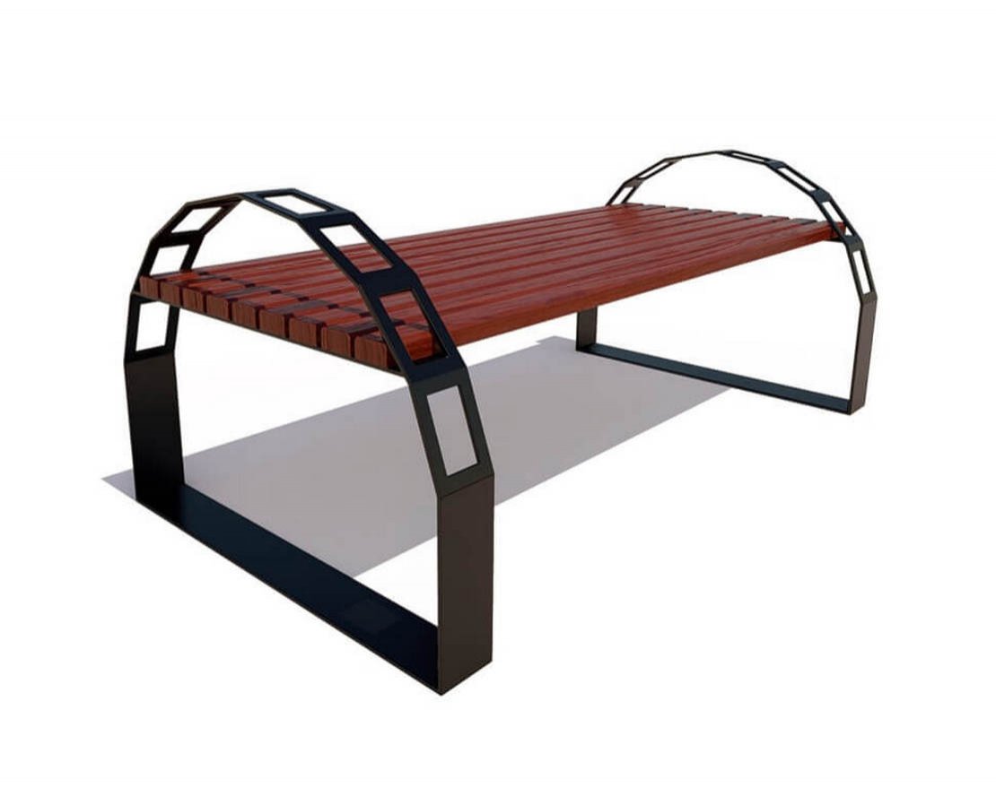Каркас лавочки изготовлен из профилированной трубы прямоугольного сечения. Конструкция прочная и устойчивая, выдерживает большой вес, стойкая к физическому воздействию.