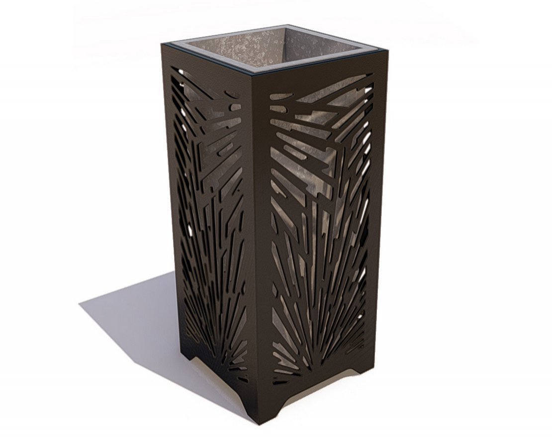 Каркас урны «Граффити» выполнен из листовой стали с применением лазерной резки. Покрыт порошковой полимерной краской. Стандартный цвет по умолчанию – чёрный муар. Есть возможность выбора цвета по шкале RAL.