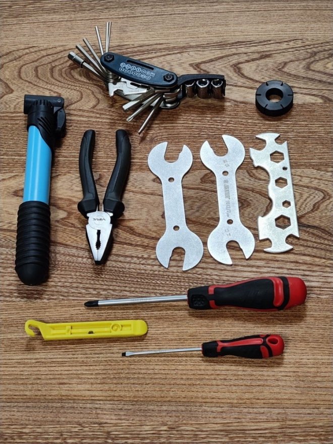 Изготовлена из стального профиля, концы вилки для подвешивания велосипеда - из резины. Набор инструментов для проведения минимального и среднего уровня ремонта, таких как ключи, отвертки и т.д.