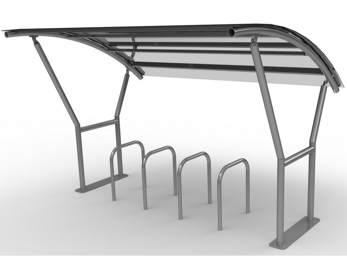 Велопарковка с навесом "Сити" устанавливается возле офисных зданий, торговых центров и других городских локаций. Обеспечивает упорядоченное размещение вело-транспорта, защищая от осадков и ультрафиолета.