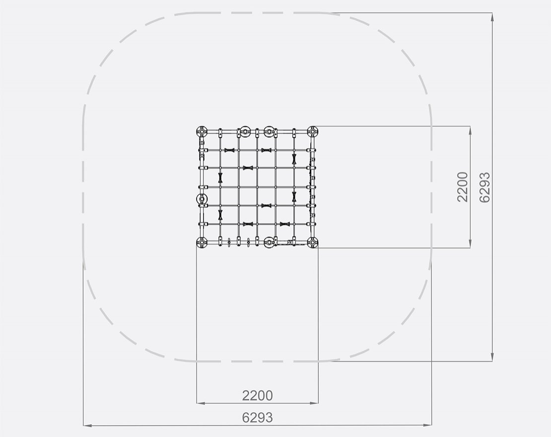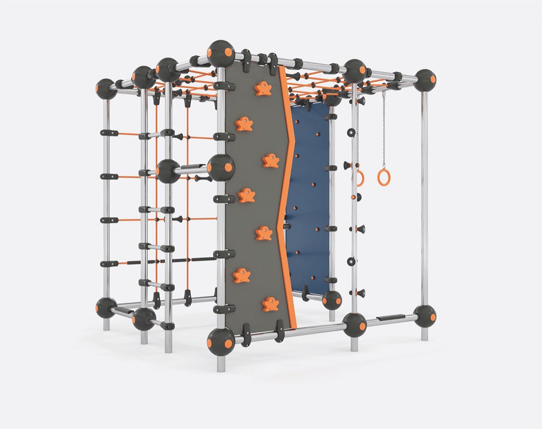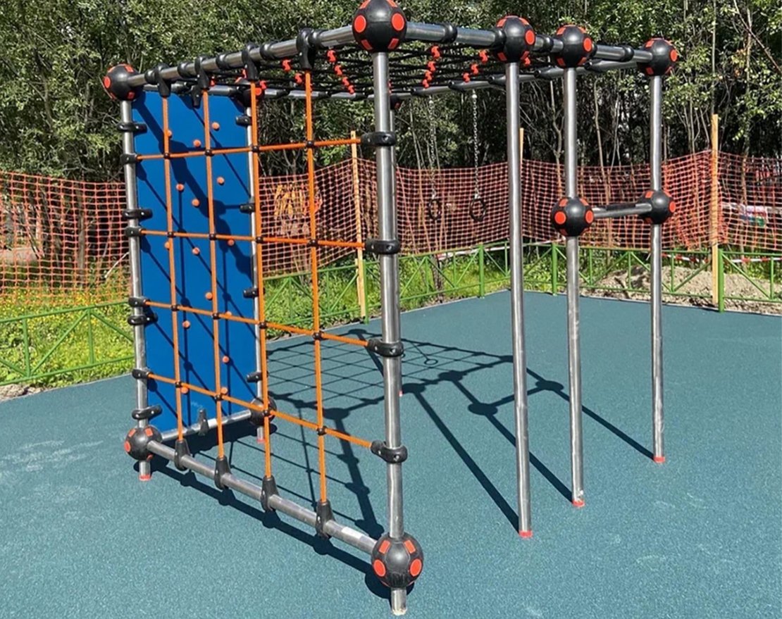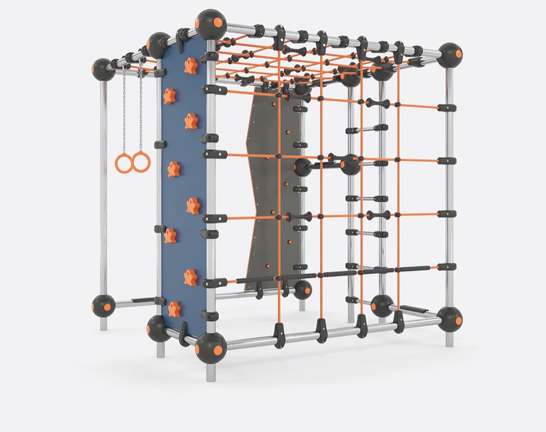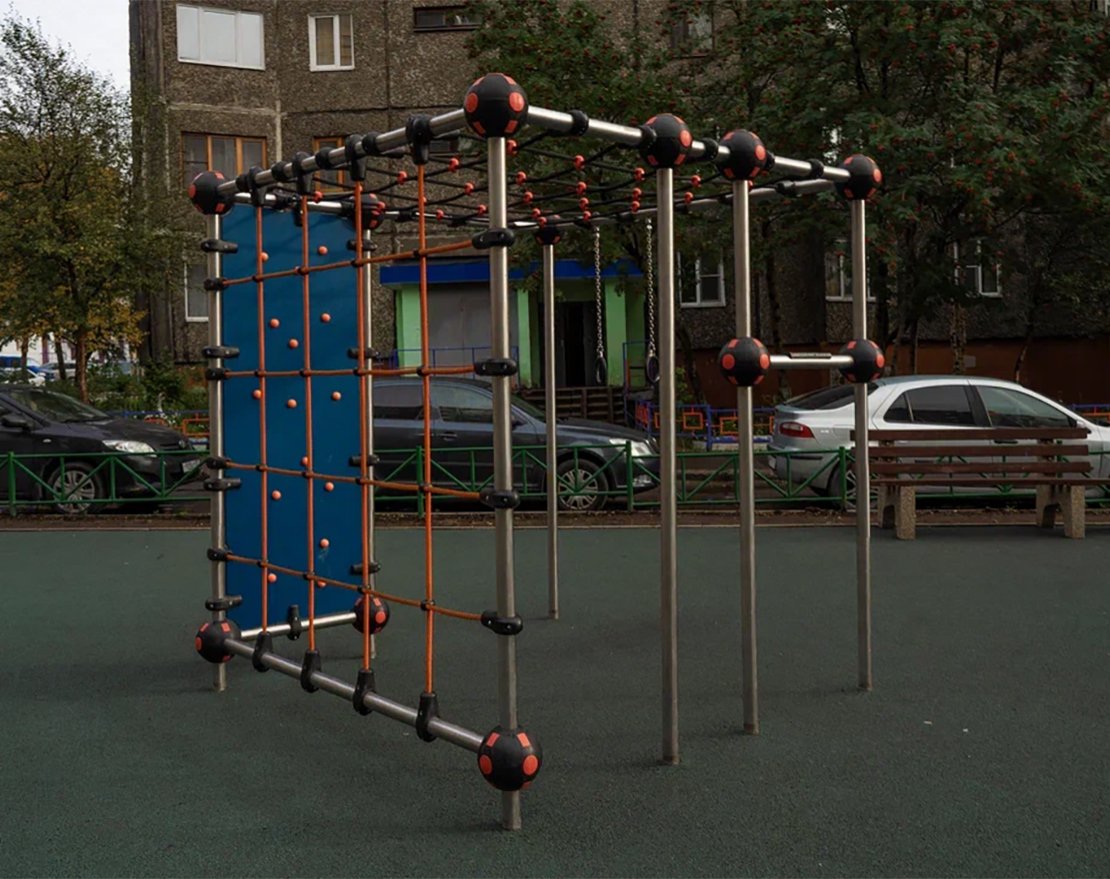 Предназначен для занятий паркуром и других различных упражнений. Состоит из металлического каркаса, канатных сеток, скалодромных панелей с зацепами, лестниц и гимнастических колец.
