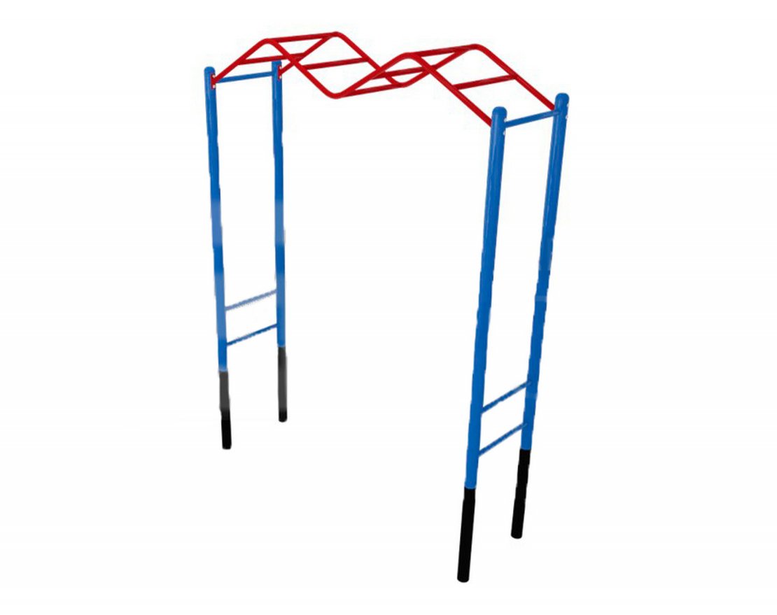 Рукоход изготавливается из металлической трубы, окрашенной полимерно-порошковой краской, устойчивой к воздействию неблагоприятных погодных условий и ультрафиолета.
