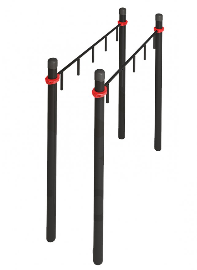 Комплекс состоит из четырех опорных столбов высотой 2130 мм и двух жердей длиной 1790 мм с вертикально расположенными вниз рукоятками длиной 198 мм. Шаг рукохода - 380 мм. Расстояние между центрами опорных столбов комплекса 608 мм. Жерди крепятся к опорным столбам при помощи хомутов на высоте 1800 мм от поверхности основания. Длина комплекса не более 2010 мм.
