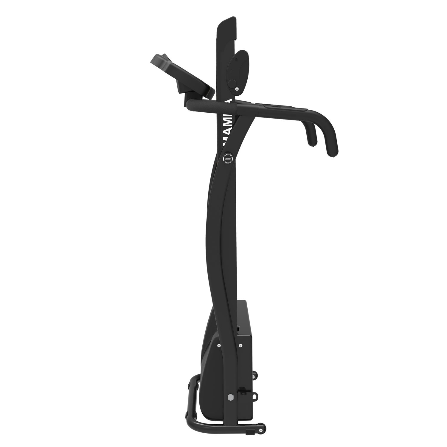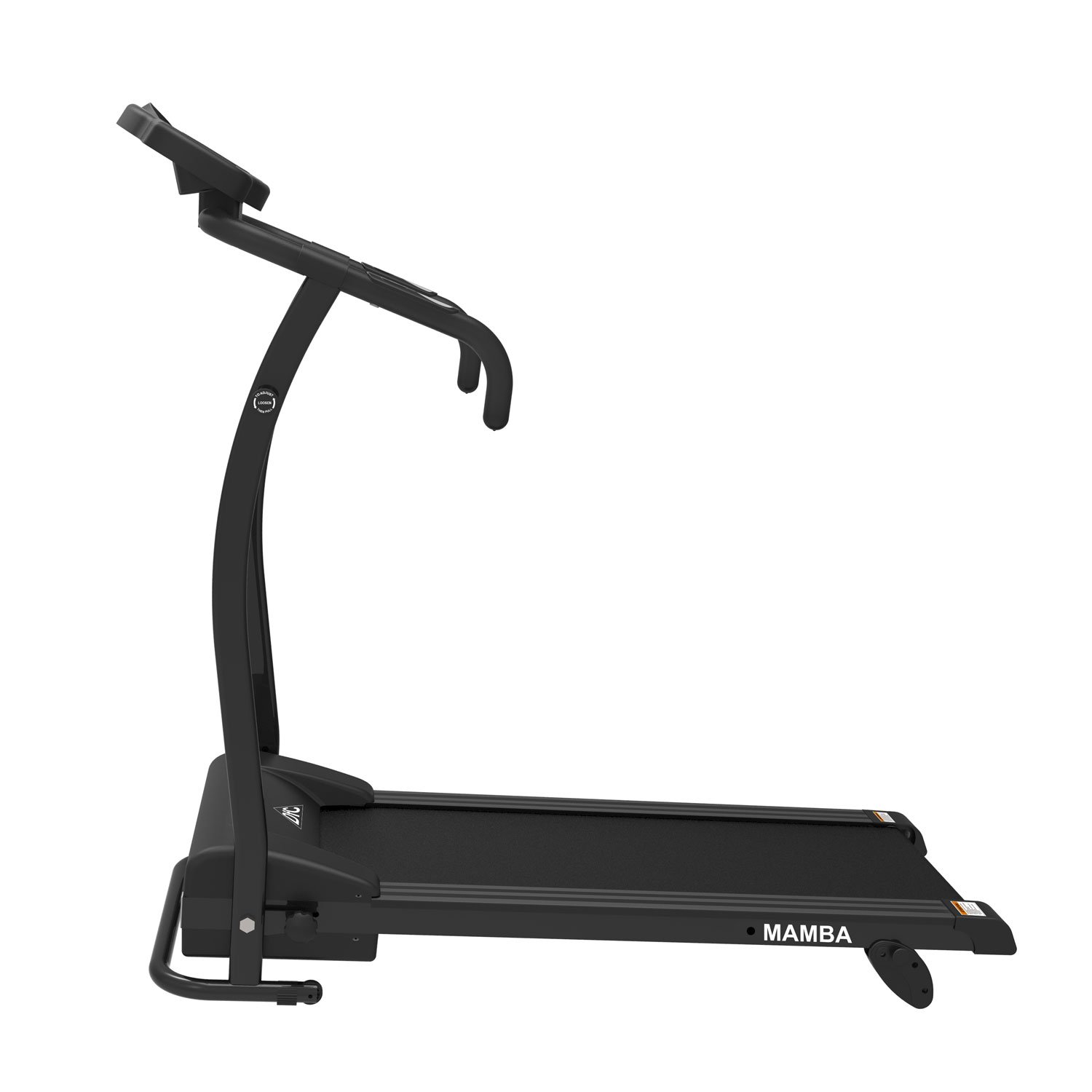Электрическая беговая дорожка для занятий дома. Тренажер с гидравлической системой складывания и ручной регулировкой угла наклона. Контролировать частоту сердечных сокращений позволяют 2 встроенных в поручни датчика.